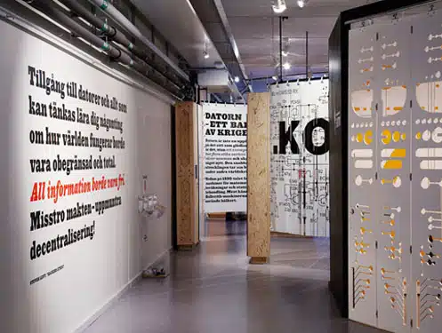 Vi har lång erfarenhet av att producera material för utställningar och museum. Med vår gedigna kunskap inom tryck hjälper vi dig att skapa professionellt utställningsmaterial. Oavsett om det ska sticka ut visuellt och vara en bärande del av upplevelsen eller en mer informativ och diskret del av utställningen, har vi en lösning som passar dina behov. Vi hjälper dig med allt från storformatsaffischer och informationspelare till rollups, tygtryck och stora hängande installationer. Tillsammans skapar vi unika lösningar som får besökarna att stanna upp.
